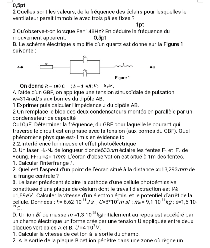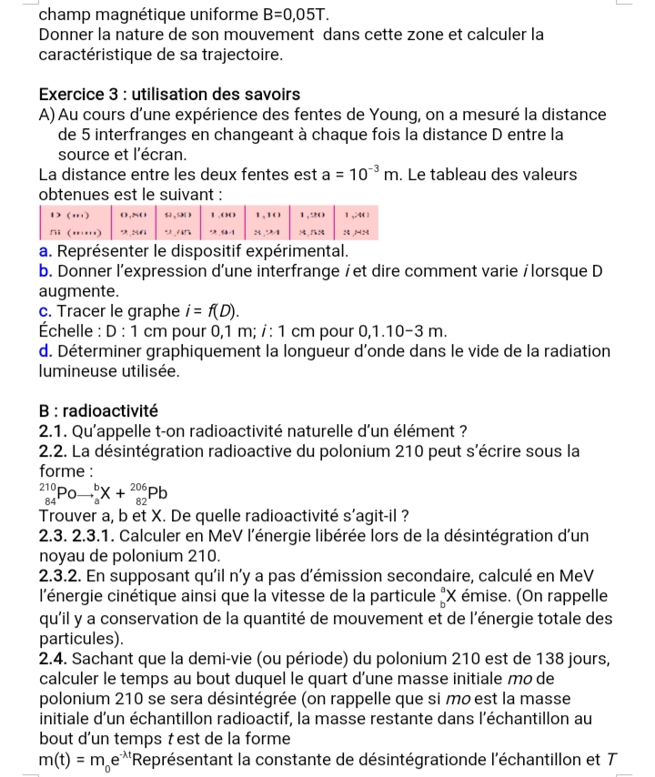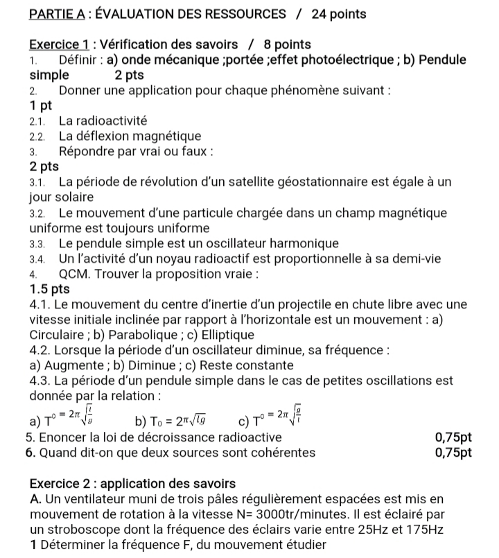 Épreuve Physique Tle D
