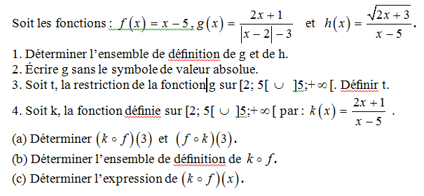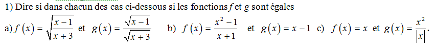 Exercice 1. Déterminer le domaine de définition des fonctions suivantes :