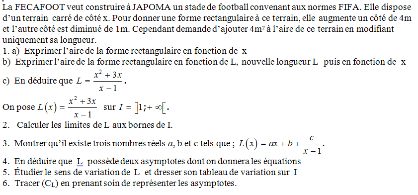 Travaux Dirigés Math 1ère D fiche 2 (Fonctions : Generalités et études)