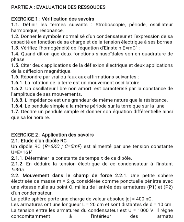 Épreuve Physique Tle C