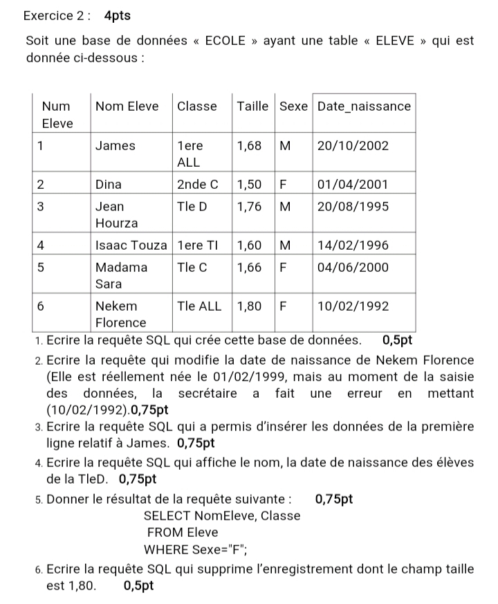 Épreuve Informatique Tle C