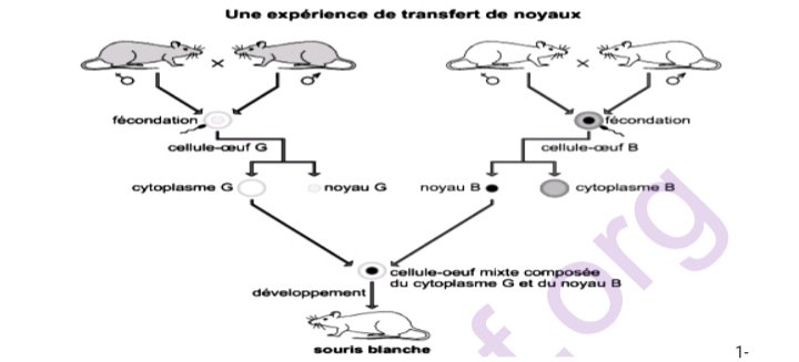 2- Donner l‘ information fournie par ces expériences sur la localisation du programme génétique?