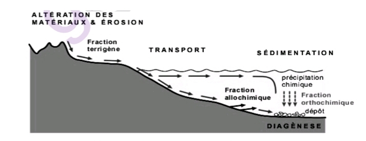 1- Relever et en ordre les étapes qui conduisent à la formation des roches sédimentaire