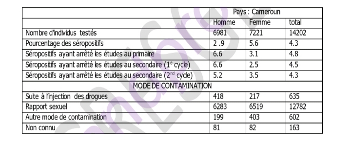Suite à une enquête menée au Cameroun en 201 concernant la prévalence du VIH SIDA chez les individus