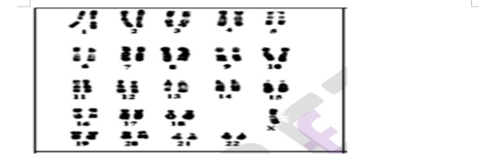 Le caryotype du document suivant est réalisé à partir d’une cellule en cours de division. Cette cellule a été prélevée chez un individu présentant des symptômes tels que : petite taille, retard intellectuel, gonades développées, stérilité …