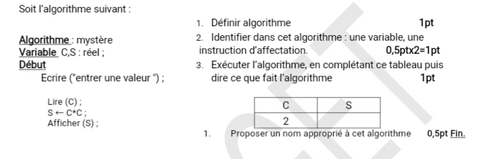 Soit l’algorithme suivant :