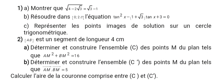• Exercices et Travaux dirigés Mathématiques 1ère C