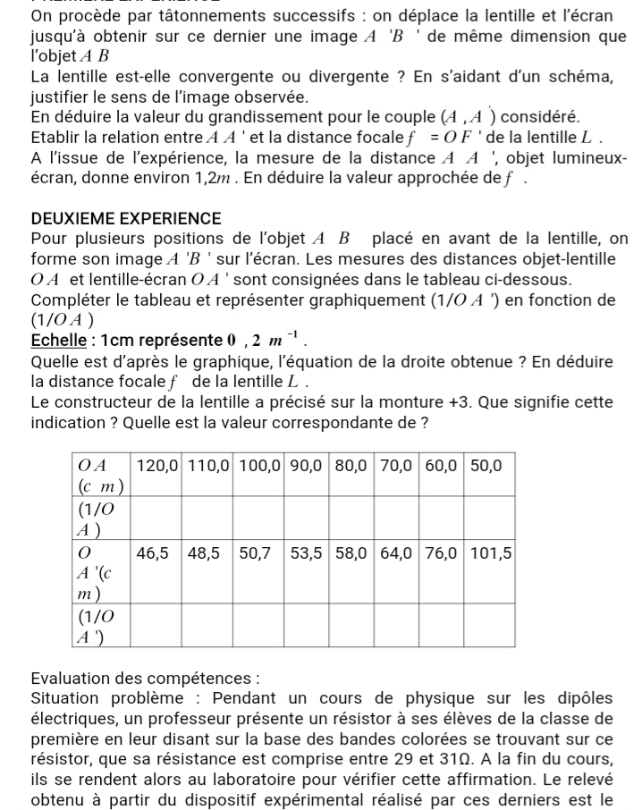 • Exercices et Travaux dirigés Physique 1ère D