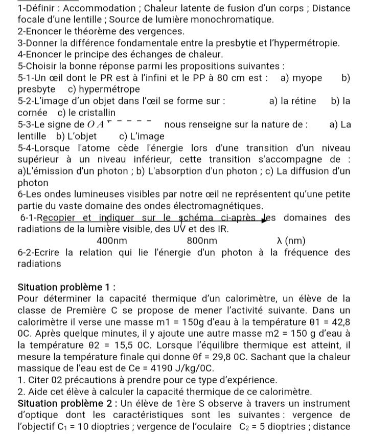 Exercices et Travaux dirigés Physique 1ère D