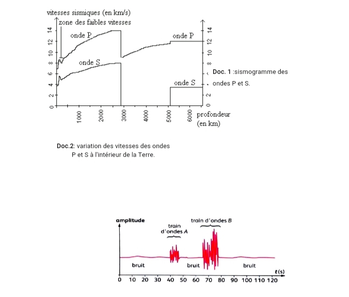 1-Identifier sur le document 1, chacun des trains d'ondes (P ou S) repéré par les lettres A et B.