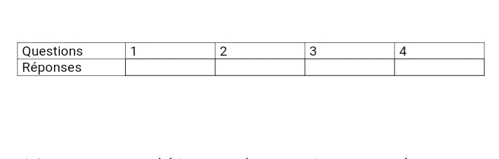 Chaque série de questions comporte une seule réponse juste. Compléter le tableau ci-après par la lettre correspondante à la réponse exacte.