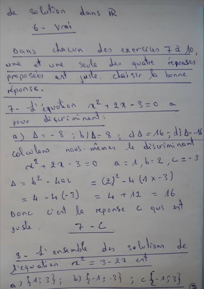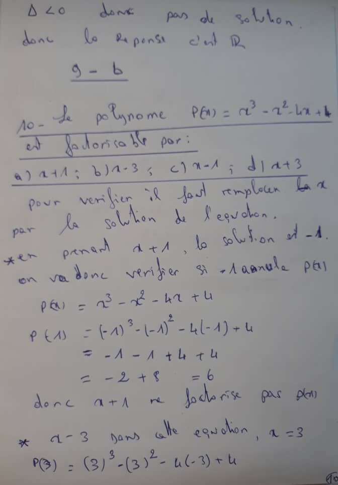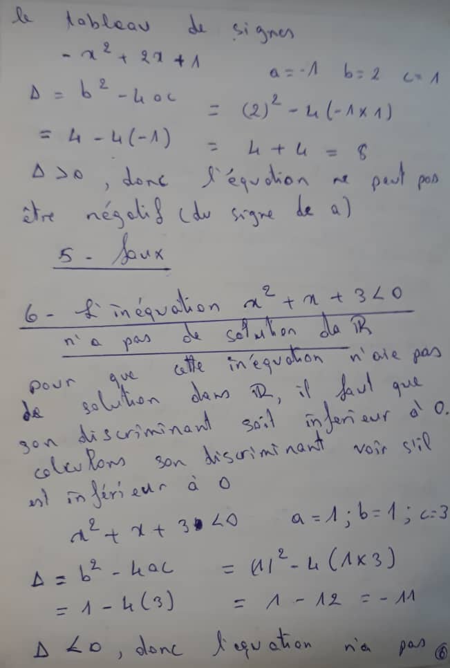 Correction des exercices du livre de mathématiques 1ere A4 : Équations et inéquations