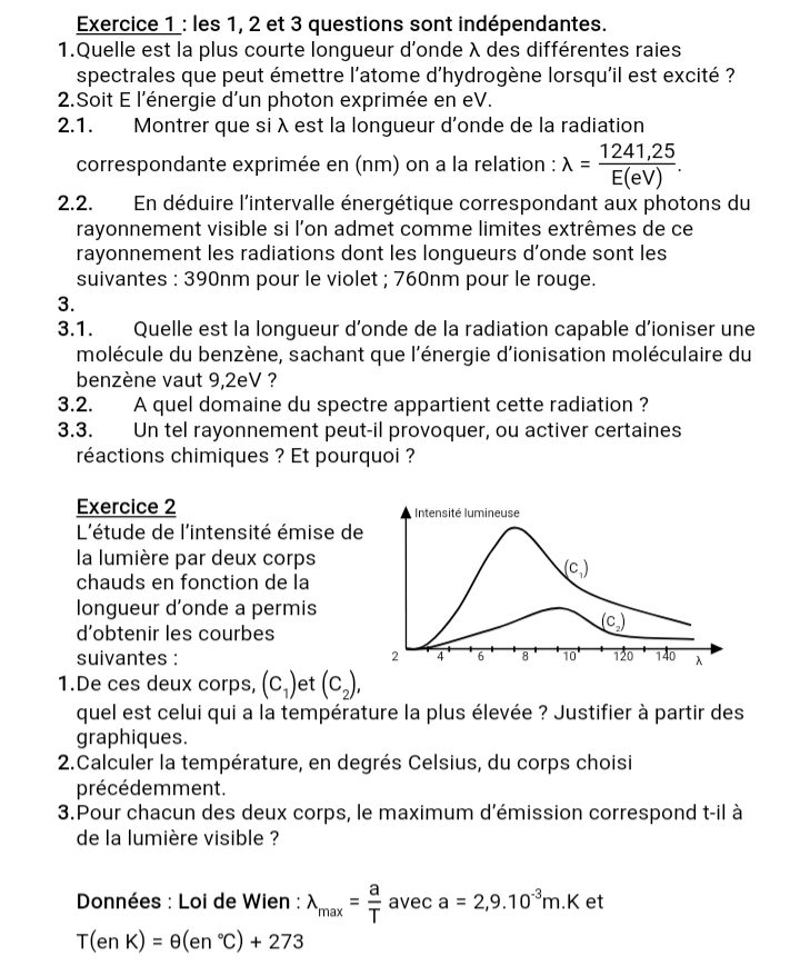 Exercices et Travaux dirigés Physique 1ère D